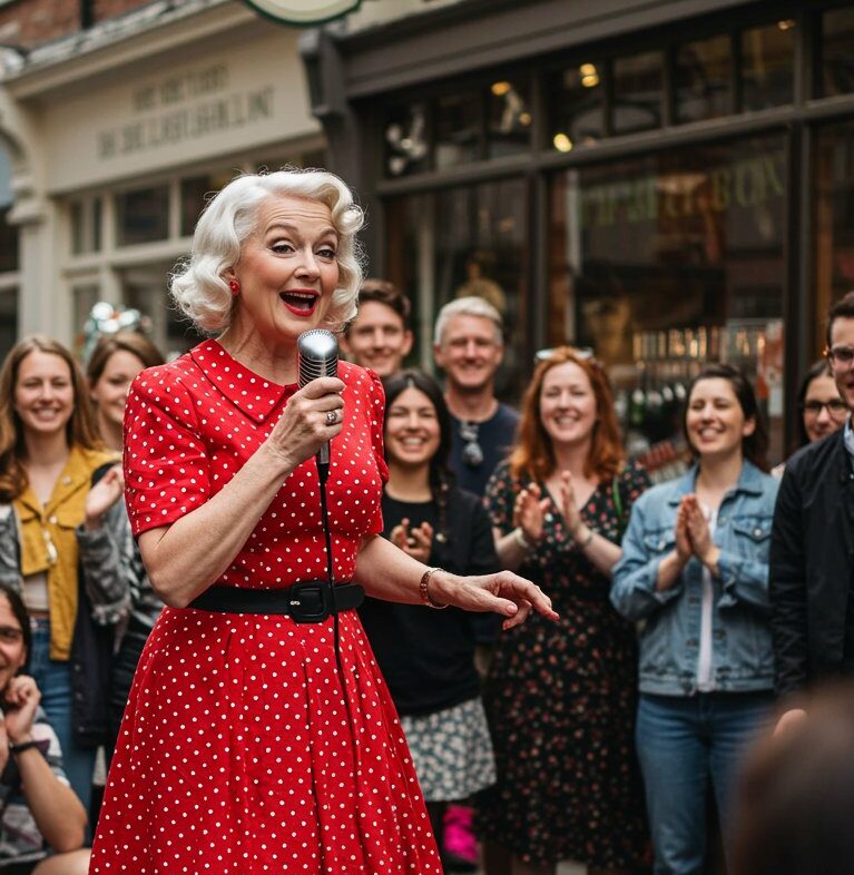 Her voice was raw, deep, powerful. Not a frail whisper, not a trembling tune, but a commanding sound that reached straight into the hearts of everyone listening. A man mid-conversation stopped talking, mouth hanging open. A teenager filming for fun suddenly tightened their grip on the phone, realizing they were witnessing something extraordinary.
